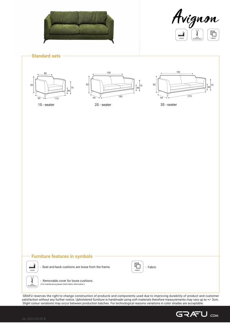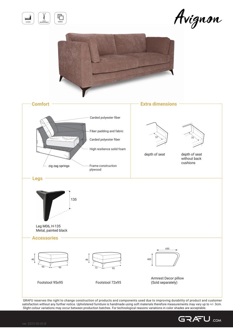 Avignon 3 seter. Leveres i flere fine stoff og farger. Armputer i tillegg.