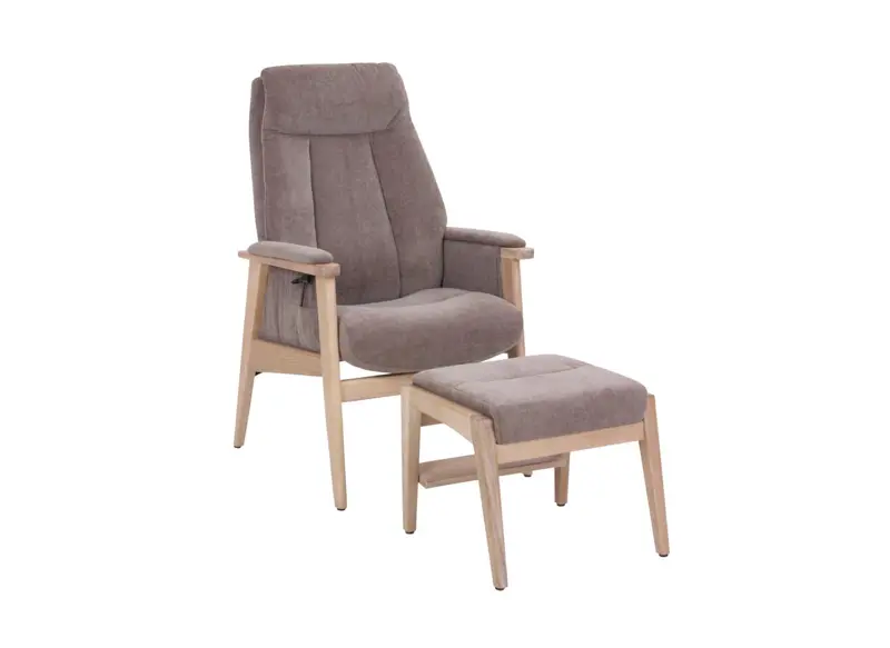 Berit lenestol m/ skammel. Stoff Danny 399-13. Hvitoljet eik. Stolen kan også leveres med motor og lift. Tilbudspris kr. 16.595,-
