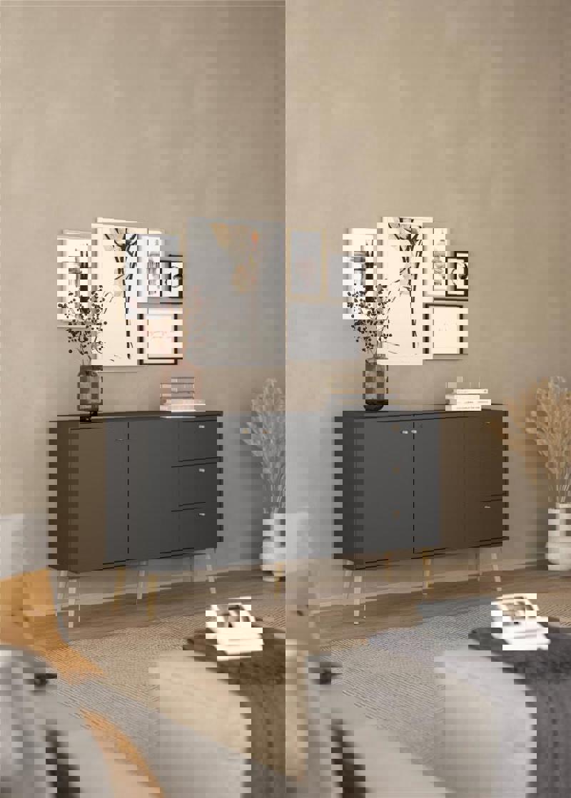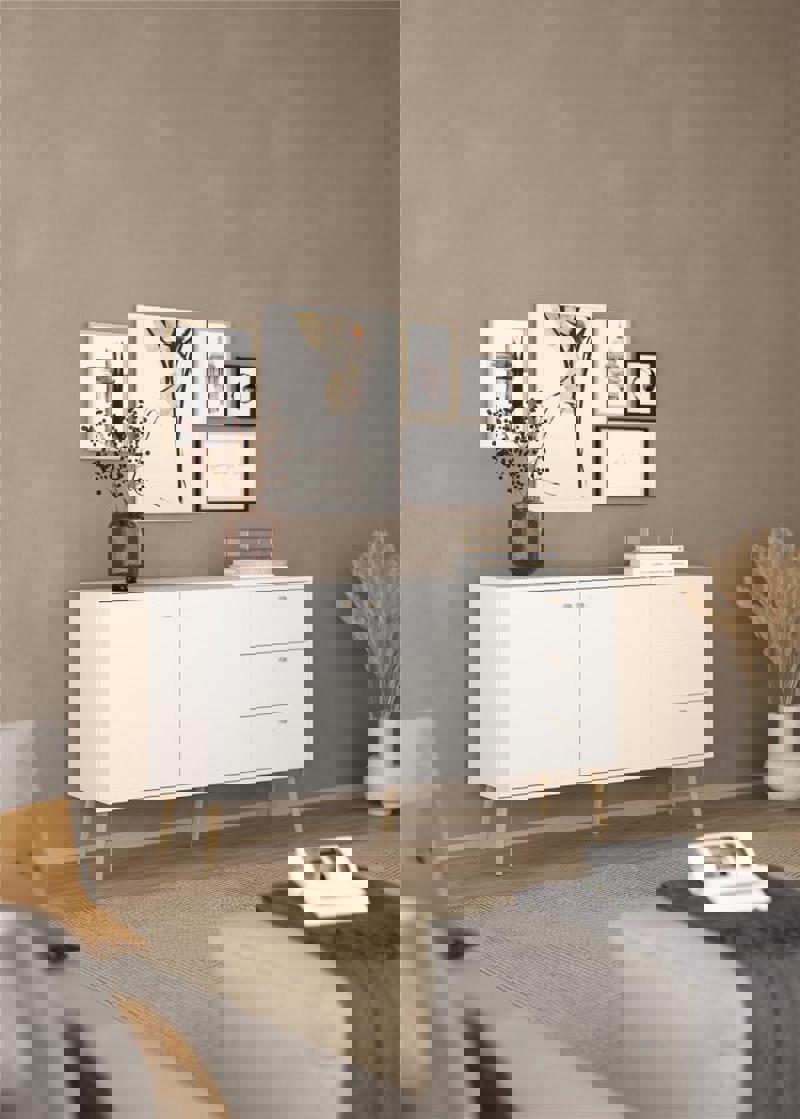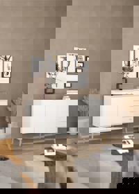 Bodo skjenk 49121. Grå og hvit. H: 82 B: 148 D: 39 cm