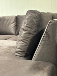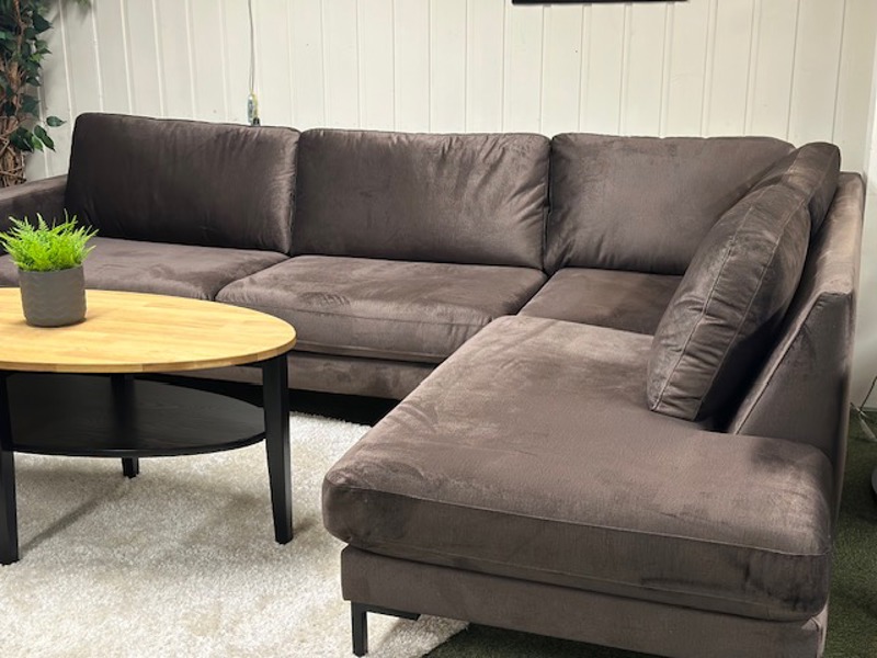285x206 cm. Leveres også i motsatt vinkel. Flere fine stoff å velge på. Skum i seteputer. Fiber i ryggputer.