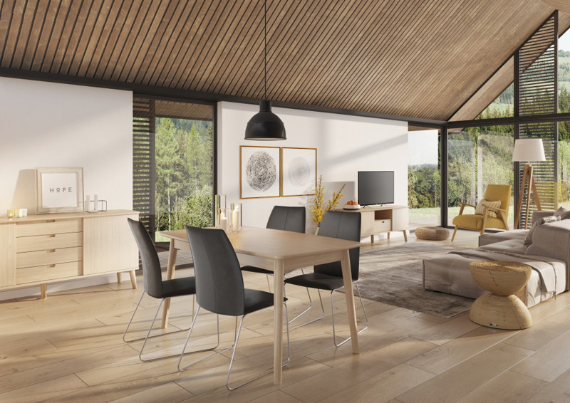 CASØ 121 spisebord fremstår i et lett og moderne design, som lener sig mot 1950'ernes populære retrostil. De lett skrånende ben og den fine overflaten gir et fint og klassisk uttrykk og gjør dette spisebord til en absolutt klassiker. CASØ 121 er lillesøster CASØ 120, utstyret med butterfly tilleggsplate, som er lett at slå ut og dermed øke plassen omkring bordet.