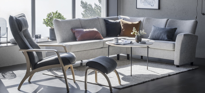 Delta Harmony stol og skammel finnes i mange ulike hudfarger og kvaliteter. Sjekk ut prøver hos oss.