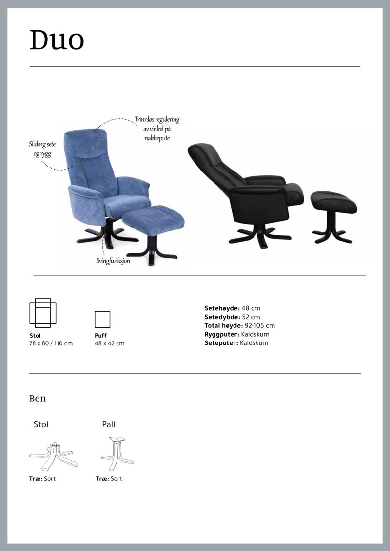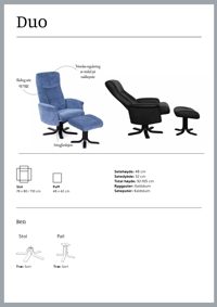 Duo lenestol m/ skammel Stoff Danny blå og grå.