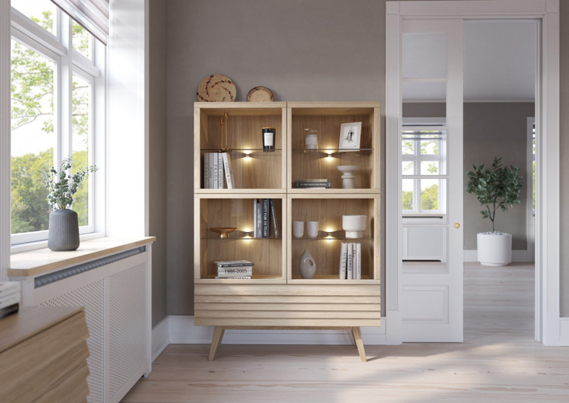 124x177x40 cm. Leveres i hvitoljet, natur og røkt eik.