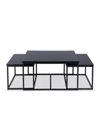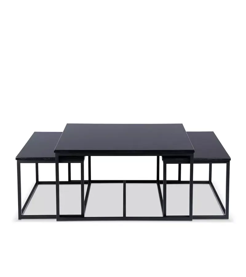Java sofabord fra Stensxpo. 90x90x48 cm. + 2 stk. 85x44x42 cm. Sort ask