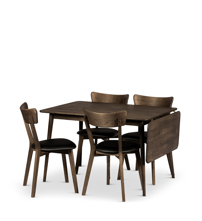 Spisebord 120x80 cm. M/ klaff 40 cm. Røkt eik. Stoler i tillegg.