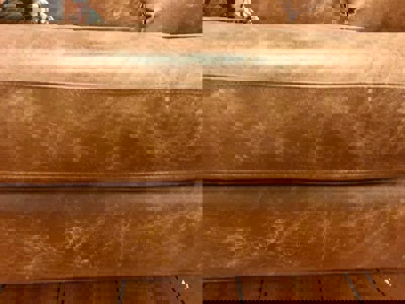 Produksjonen av skinnet innebærer en fargingsprosess som utføres for hånd. Dette medfører at det vil forekomme fargevariasjoner innad i skinnet på sofaen og fra sofa til sofa. Hver enkelt sofa er helt unik og merker, porer, ol. i skinnet er beholdt i sin naturlige form.