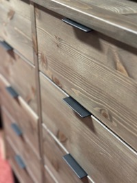 Alma-serien er produsert i heltre furu med overflate som fremhever treets naturlige struktur.