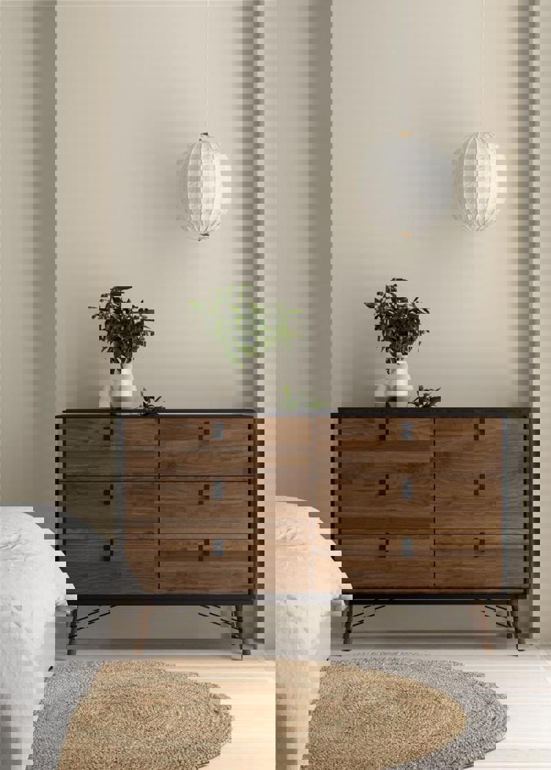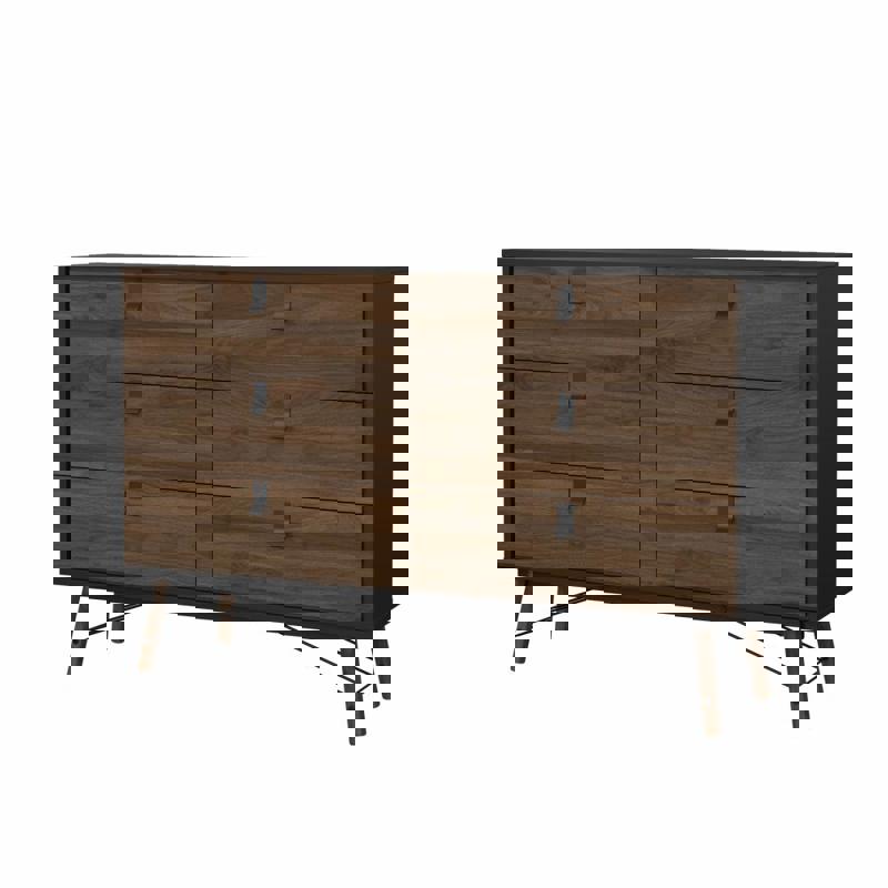 Ry skjenk 86012. B: 150 H: 95 D: 40 cm. Sort / valnøtt og hvit