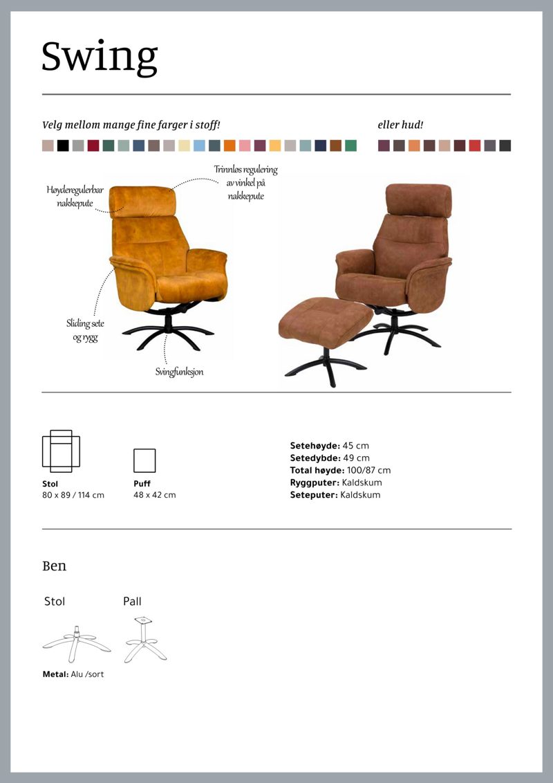 Swing Stol m/ skammel Stoff Adore velur Utvalgte farger