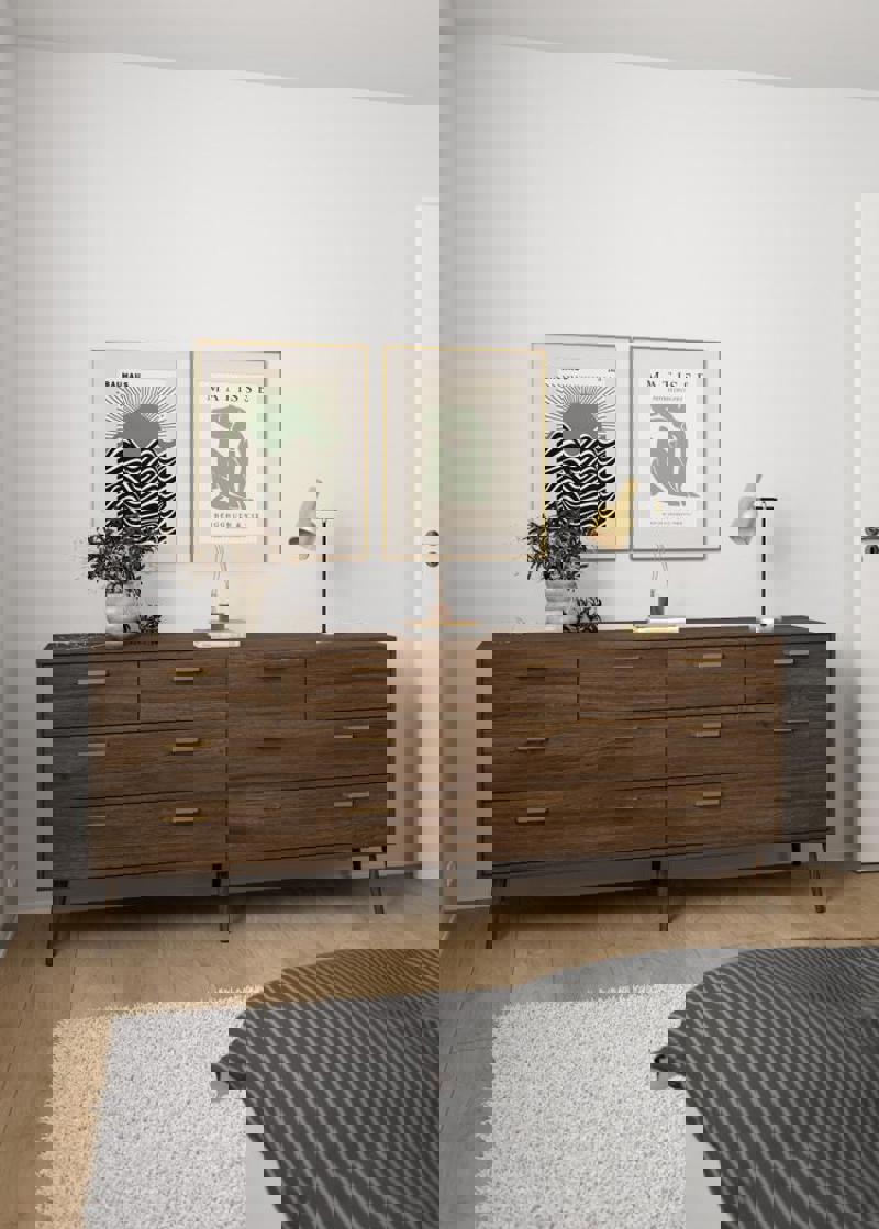 Tone dobbel kommode 4+4 skuffer, Narbonne eik-laminat, 195,7 x 48,1 x 81,7 cm