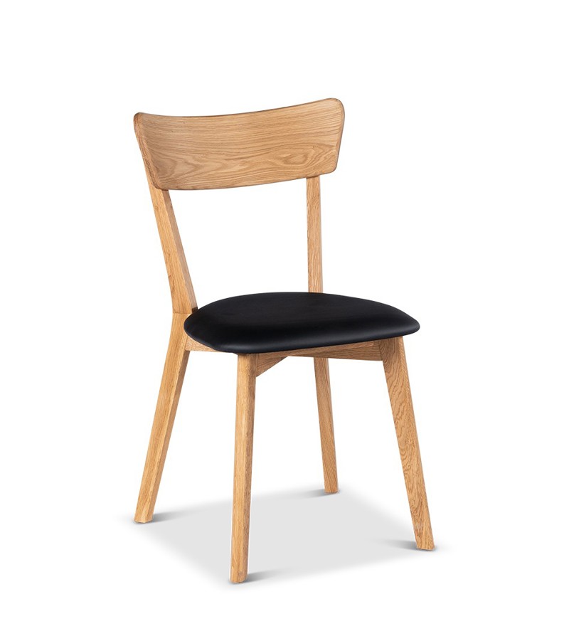 Stol i oljet eik og sort PU. Høyde 81 cm.